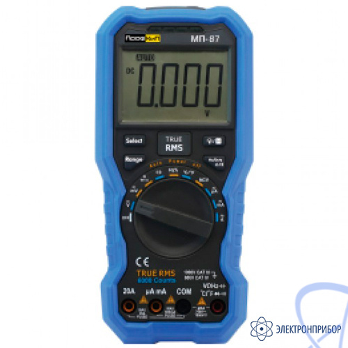Мультиметры переносные ПрофКиП МП-87 предназначены для измерения напряжения постоянного и переменного тока, силы постоянного и переменного тока, сопротивления постоянному току, электрической ёмкости и частоты. Приборы оснащены жидкокристаллическими дисплеями для индикации результатов измерений. Мультиметры отличает компактность, незначительная масса и возможность автономного питания в различных условиях эксплуатации. Мультиметры предназначены для использования в цеховых и лабораторных условиях, при наладке и ремонте радиотехнического оборудования, электронных схем и узлов автоматики, а также при тестировании и ремонте промышленных электросетей. Высокоточный прибор для измерения параметров тока, напряжения и сопротивления. Модель позволяет работать с током AC до 10А и DC до 20А, напряжением AC до 750 В и DC до 1000 В, а также сопротивлением до 60МОм. Дополнительно измеряет ёмкость до 60мФ и частоту сигнала до 9999кГц. Температурный диапазон от -50 до +400°C. Инновационный дисплей с подсветкой обеспечивает четкость показаний. Функции включают встроенный фонарик, авто/ручное изменение диапазонов, HOLD, индикатор заряда батареи, бесконтактный индикатор напряжения