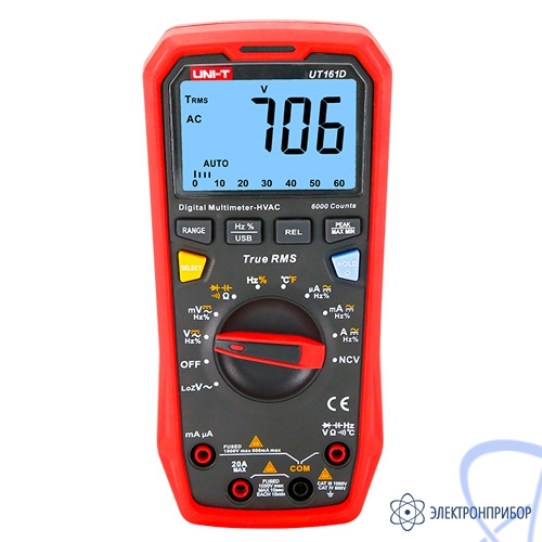 Цифровой мультиметр с функцией True RMS UNI-T UT161D абсолютно новый мультиметр, который соответствует всем потребностям электрика. Высокотехнологичный прибор благодаря низкому импедансу позволяет делать измерения максимально точными.