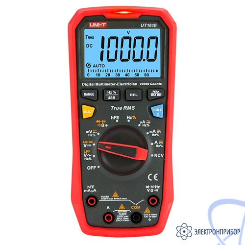 Цифровой мультиметр с функцией True RMS UNI-T UT161E – новый мультиметр, который может измерять скважность, а также имеет функцию измерения и стинного среднеквадратичного значения (True RMS). Функции: аналоговая шкала, NCV, Max/Min.