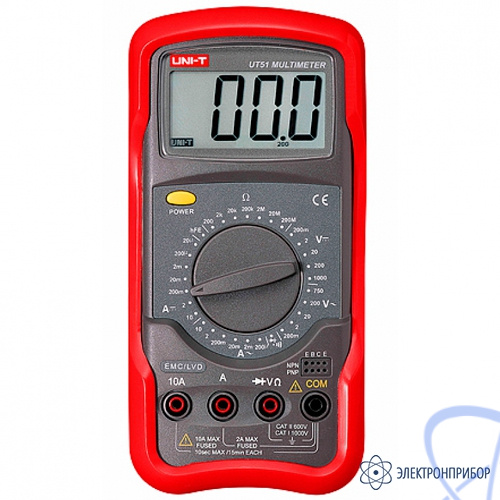 Цифровой мультиметр UNI-T UT51 является высокоточным малогабаритным измерительным прибором. Прибор оборудован современной интегральной схемой с A/D конвертером имеет защиту от перегрузки во всех диапазонах. Измерительный прибор позволяет измерять постоянный и переменный ток, постоянное и переменное напряжение, сопротивление, диод и проводить тест на обрыв.