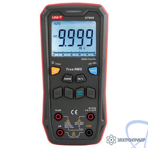 Профессиональный TRUE RMS мультиметр UNI-T UT60S применяется для измерения постоянного/переменного напряжения до 1000 В, силы тока до 10 А, сопротивления до 100 МОм и температуры с большим разрешением и точностью. В приборе используются только кнопочные выключатели и переключатели для изменения функций и параметров.