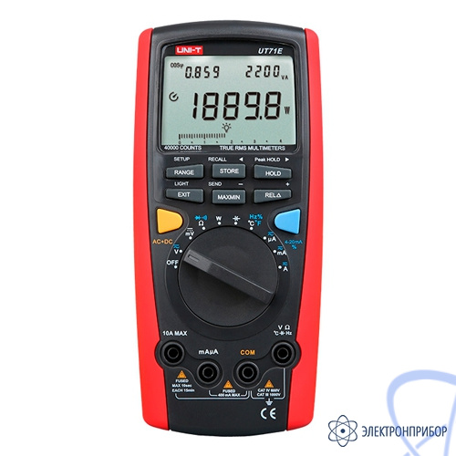Цифровой мультиметр UNI-T UT71E – измерительный прибор современной конструкции с 43/4 - разрядным дисплеем с максимальным индицируемым значением 40000. Мультиметр позволяет измерять не только постоянные и переменные напряжение и ток, сопротивление, емкость, температуру, частоту, параметры токовой петли 4-20 мА, проверять диоды и выявлять наличие обрывов в электрических цепях, определять максимальное и минимальное значения измеряемой величины, проводить относительные измерения. Он также имеет функции сохранения данных в память и вызова их из памяти, вычисления истинного среднеквадратичного значения переменного тока (AC True RMS), измерения постоянной и переменной компонент тока (AC+DC), фиксации данных, автоотключения, дисплей с низким потреблением энергии, двухуровневую подсветку дисплея. Прибор оснащен защитой от перегрузок на всех пределах.