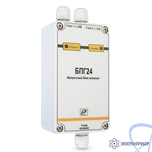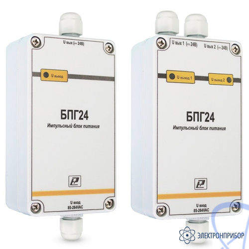 Блоки питания импульсные герметичные БПГ 24 используются для построения «распределенных» систем контроля и автоматизации на базе физического интерфейса RS485. БПГ24 можно использовать как для питания линии RS485, так и отдельных, входящих в нее приборов. Может применяться в жестких условиях эксплуатации. Блоки питания БПГ 24 предназначены для питания стабилизированным напряжением постоянного тока 24В различных радиоэлектронных устройств (релейной автоматики, контроллеров, датчиков и т.п.).