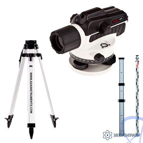 ADA RUBER-X32 (арт. А00121_К1) — нивелир оптический в комплекте с рейкой ADA STAFF 3 и штативом на клипсах ADA Light - купить в Казахстане, цены