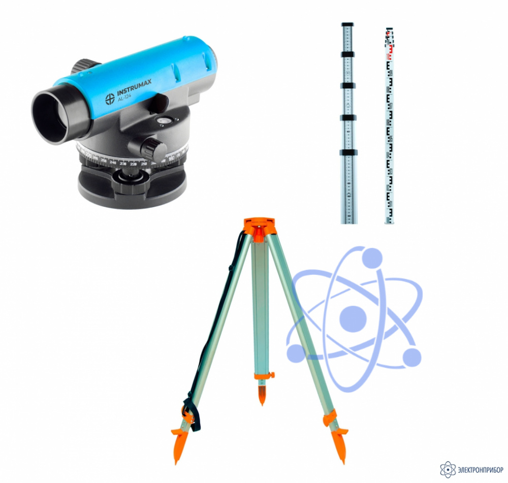 Комплект INSTRUMAX AL-124+ TS-500+ TR-160 состоит из оптического нивелира INSTRUMAX AL-124, нивелирной рейки INSTRUMAX TS-500 и геодезического штатива алюминиевого на винтах INSTRUMAX TR-160.
