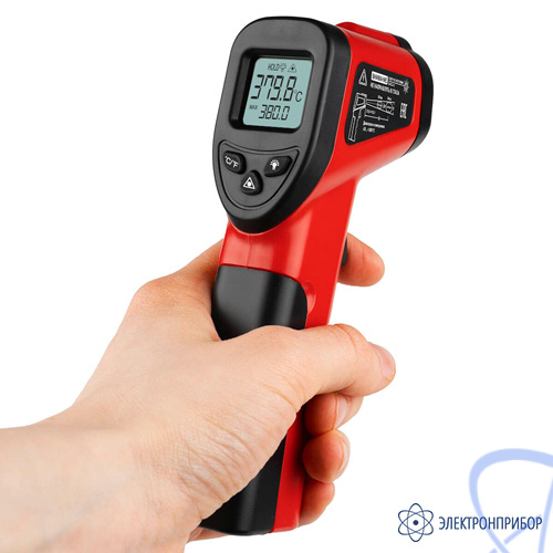 - Функция HOLD, которая активируется автоматически после отпускания курка на рукоятке, фиксирует текущие цифровые показания на дисплее, что облегчает считывание результатов измерений.