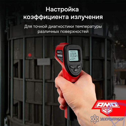 Пирометр AMO T630 – высокопроизводительный прибор карманного форм-фактора с питанием от 2 батарей типоразмера AAA, который позволяет измерять поверхностную температуру целевых объектов в дистанционном режиме. Регулируемый показатель коэффициента излучения EMS, от 0,1 до 1,0, обеспечивает более высокую точность показаний, по сравнению с младшими модификациями устройств серии T600, при определении температурных показателей изделий, изготовленных из разнотипных материалов. Расширенный измерительный диапазон инструмента, от -50 до +550°С, при разрешении в 0,1°С и погрешности, не превышающей 2%, позволяет использовать его для решения широкого круга технических, диагностических и прикладных задач, в том числе в промышленных отраслях и энергетике.