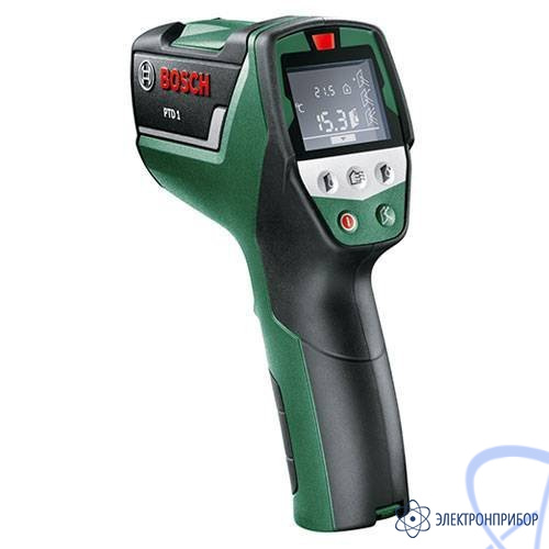 Термодетектор Bosch PTD 1 измеряет температуры любых поверхностей с расстояния от 1м до 5м в диапазоне от -20°C до +200°C, чего вполне достаточно для большинства измерений в коммунальном хозяйстве. Устройство имеет переменный коэффициент эмиссии, что позволяет одинаково точно регистрировать температуру любых поверхностей. Оптическое разрешение Bosch PTD 1 составляет 10:1, что позволяет измерить температуру нагретого объекта с безопасного расстояния.