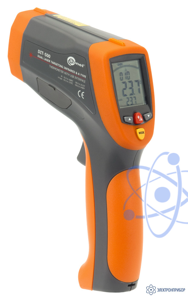 Инфракрасный измеритель температуры (пирометр) DIT-500 - это современный прибор, позволяющий бесконтактным методом измерить температуру поверхности любых объектов: электронные компоненты, пластик, металл, дорожные покрытия, пластик, дерево, легко воспламеняемые объекты.