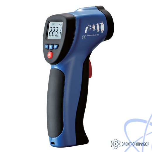 Пирометр DT-882 – дистанционный измеритель температуры, одним нажатием кнопки позволяет бесконтактным (ИК) способом измерять температуру. Бесконтактные инфракрасные термометры могут использоваться для измерения температуры поверхности объектов, которую невозможно измерить традиционным (контактным) термометром (например: движущиеся или труднодоступные объекты, поверхности объектов находящихся под напряжением).