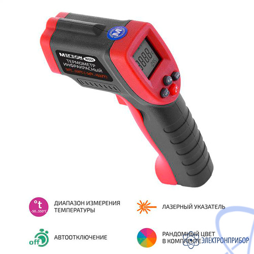 Компактный пирометр МЕГЕОН 16551 представляет собой дистанционный измеритель, который позволяет измерять температуру исследуемого объекта без контакта с ним. Благодаря эргономичному корпусу и удобному расположению элементов управления, пользоваться пирометром МЕГЕОН 16551 очень просто. Оснащен контрастной и яркой подсветкой дисплея с возможностью отключения. Также прибор имеет встроенный лазерный целеуказатель с возможностью отключения. Прибор обладает мощным функционалом, отображение минимальной, максимальной, средней температуры, высчитывает разницу между минимумом и максимумом измеренной температуры (дифференциальный режим), оповещение о достижении установленного минимального и максимального порогов. Возможность установки коэффициента излучения от 0,1 до 1. Прибор оснащен функцией автоматического отключения при длительном простое. Также стоит отметить, что данный пирометр использует эффективную схему питания, которая позволяет производить измерения непрерывно в течение 22-х часов без замены элемента питания.