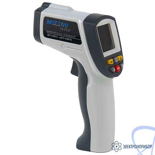 МЕГЕОН 16950 это компактный бесконтактный инфракрасный термометр (пирометр). Главным достоинством прибора является возможность бесконтактного (дистанционного) измерения температуры объекта. Это свойство широко используется в тех случаях, когда необходимо измерить температуру движущегося, опасного или горячего объекта, в труднодоступном месте или удалённого объекта.
