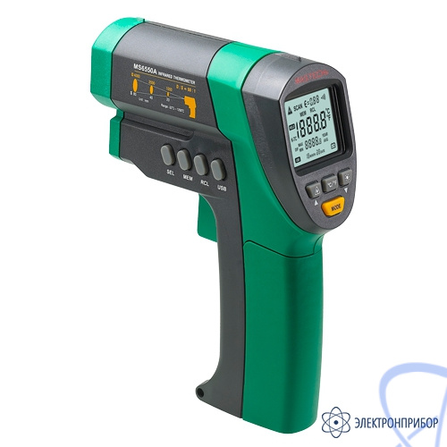 Цифровой пирометр MS6550A - дистанционный измеритель температуры, с соотношением дальности измерений с площадью считывания показаний 50:1, позволяющий измерять температуру поверхностей.
