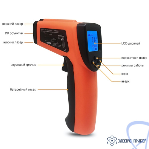 ПИТОН-102-600 является инфракрасным термометром, выполненным в компактном корпусе. Минимальная измеряемая температура составляет – 30 градусов Цельсия. Максимальная + 600 градусов. Измеренные значения могут отображаться на дисплее прибора как в градусах Цельсия, так и Фаренгейта. Пирометр оснащен лазерным целеуказателем, подсветкой дисплея, функциями автоотключения и фиксацией текущего значения на экране прибора.