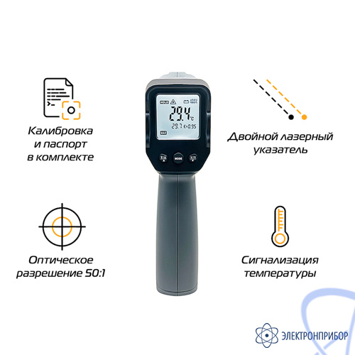 Измерение температуры осуществляется в диапазоне от -50 до 800 градусов Цельсия. В названии пирометра отображена максимальная измеряемая температура.