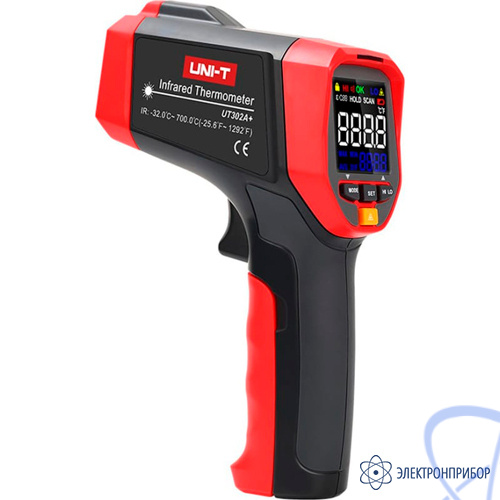 Инфракрасный термометр (пирометр) UNI-T UT302A+ позволяет осуществлять бесконтактное измерение температуры в диапазоне от -32 до +700 °C. Точность прибора - до 1,5 °C или ± 1,5 %. Скорость отклика - 250 мс. Есть функция индикации низкого заряда, функция автоотключения.