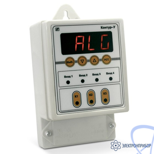 Контроллер уровня универсальный Контур-У предназначен для автоматического заполнения или осушения резервуара, сигнализации превышения уровня, измерения уровня, управления насосами по выбранному алгоритму.