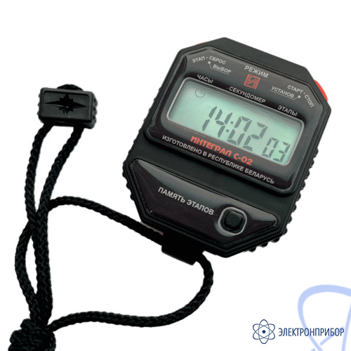 Секундомер электронный Интеграл С-02 предназначен для измерения длительностей интервалов времени и воспроизведения 24-часовой шкалы времени, индикации текущего времени. Область применения — научно-производственная деятельность, спорт.