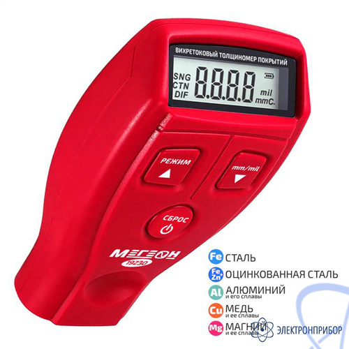 МЕГЕОН 19230 - это вихретоковый измеритель толщины декоративных покрытий. Прибор быстро и с высокой точность позволяет измерять защитный слой материала на любом металлическом основании. Модель имеет стильный внешний вид, эргономичный форму, небольшие размеры и маленький вес, что даёт возможность переносить его даже в кармане. Наличие трёх режимов измерения значительно упрощает процесс замеров, а выбор режима работы позволяет достичь максимального удобства при эксплуатации, а для достижения минимальной погрешности предусмотрена калибровка по семи точкам. Прекрасно подойдёт для инспекции толщины лакокрасочных, ламинирующих и антигравийных плёнок автомобилей. Поставляется с полным комплектом калибровочных пластин и подробной инструкцией. Будет незаменимым помощником в производстве, в сфере автомобильного ремонта, химической промышленности и предоставления услуг.