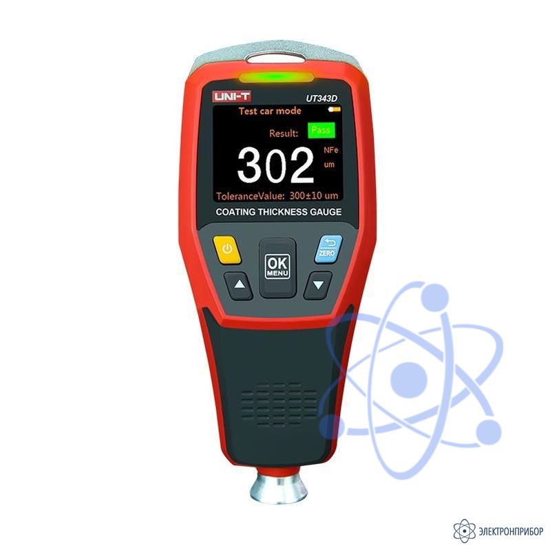 UNI-T UT343D – это толщиномер, использующийся для быстрого и точного измерения толщины покрытия на магнитных и немагнитных металлах без повреждения покрытия. При попадании тестируемого покрытия в заданный диапазон, устройство выдает звуковой сигнал, а также оповещает об этом при помощи мигающих светодиодов.