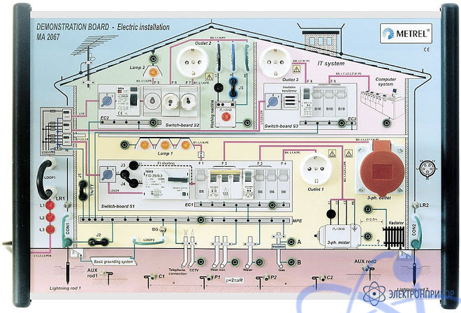 Демонстрационный стенд MA2067 представляет собой уникальную модель электроустановки со всеми присущими ей элементами. Основным предназначением стенда является обучение студентов и слушателей различных учебных заведений навыкам работы в электроустановках до 1000 В. Стенд симулирует все системы электроснабжения (TT, TN, IT) и содержит все необходимые для демонстрации измерений элементы: УЗО, предохранители, трехфазную и однофазную розетки, систему уравнивания потенциалов, систему заземления и молниезащиты и др. Стенд MA2067 позволяет имитировать различные неисправности и нарушения в электросети, устройствах коммутации и защиты для демонстрации их обнаружения приборами. Демонстрационный стенд отличается наглядностью, удобством и компактностью. Возможность имитировать неисправности позволяет демонстрировать с помощью Demo Board MA2067 работу контрольно-измерительных приборов, что, безусловно, может быть востребовано производителями подобной аппаратуры при проведении презентаций, выставок и других мероприятий.
