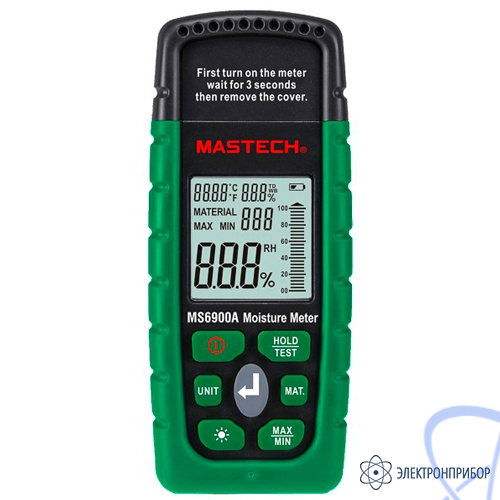Профессиональный цифровой влагомер Mastech MS6900 позволяет измерять влажность материалов, а также температуру и влажность окружающей среды. Прибор идеален для измерения влажности дерева, бетона, газоблоков, кирпичей, стяжки, деревянных и бетонных зданий и конструкций.