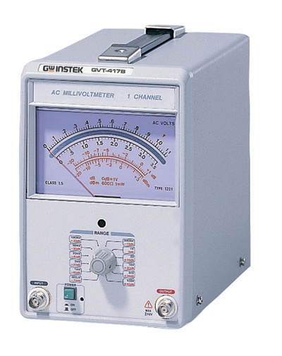 Вольтметр переменного тока GVT-417B: Измерение среднеквадратического значения переменного напряжения синусоидальной формы на пределах от 300 мкВ до 100 В; Диапазон рабочих частот 10 Гц … 1 МГц; Измерение относительных уровней на пределах от минус 70 дБ до 40 дБ; Измерение относительных уровней в дБ и дБм; Выход широкополосного усилителя для каждого канала; Простота, компактность, надёжность; Масса 2,7 кг.