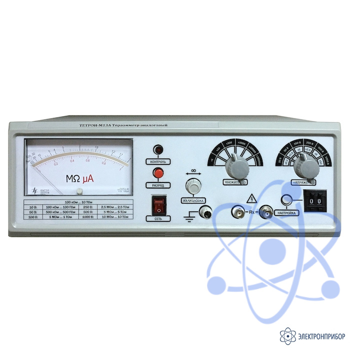 ТЕТРОН-М13 является лабораторным тераомметром с аналоговой индикацией и ручным выбором диапазонов измерения.