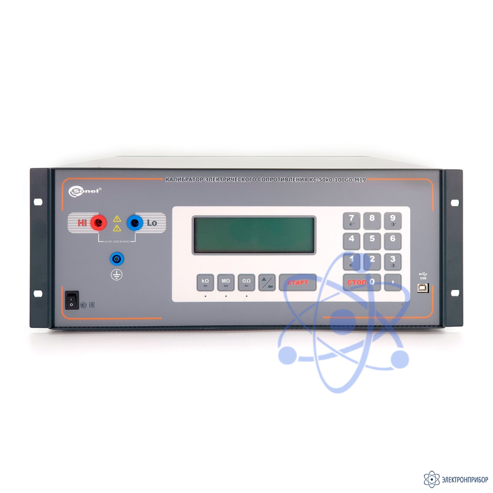 Калибратор электрического сопротивления КС-10G0-10T0-М19 выполнен в конструктивном исполнении под 19-дюймовые монтажные стойки и обеспечивает воспроизведение электрического сопротивления в диапазоне от 10 ГОм до 10 ТОм. Необходимое сопротивление устанавливается пользователем с помощью клавиатуры приборов.