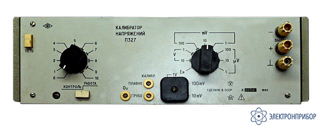 Калибратор П327 редназначен для выдачи напряжений постоянного тока (многопредельный, однодекадный) с погрешностью, не более ±(2U+0,4)мкВ, (где U — установленное напряжение в вольтах) в диапазоне от 10-7 до 10В.