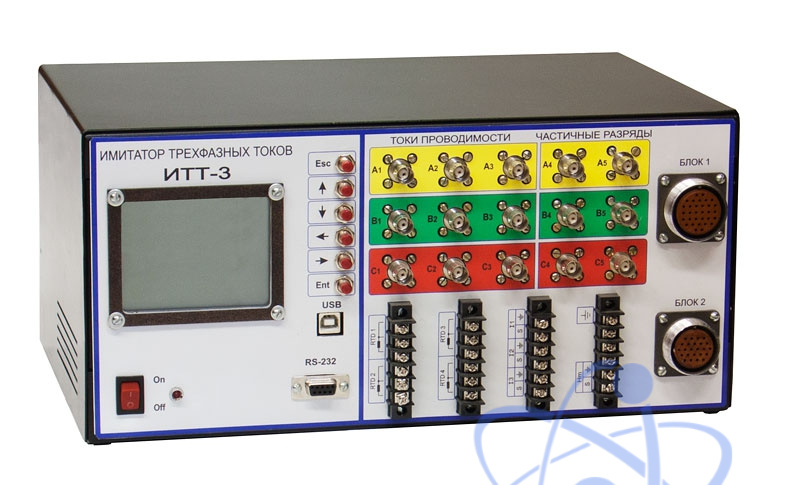 Имитатор тестовых сигналов марки ИТТ-3 предназначен для работы в составе автоматизированных комплексов для тестирования и проверки функций систем мониторинга и диагностики трансформаторного оборудования. В состав такого стационарного испытательного комплекса входит компьютер, имитатор ИТТ-3, комплект соединительных кабелей и специализированное программное обеспечение.