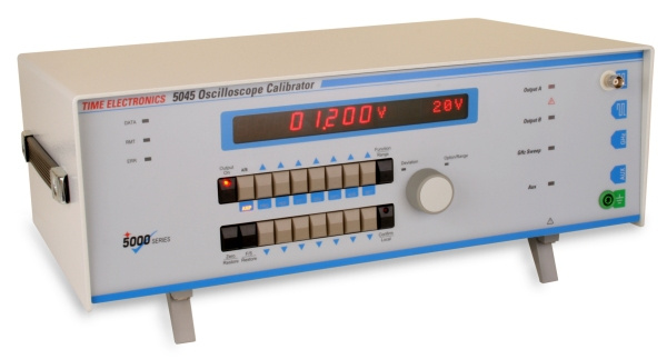 Калибратор TE5045 является высокоточным многоцелевым калибратором для калибровки различных типов осциллографов и таймеров/частотомеров. С его помощью можно создать спектр опорных (эталонных) сигналов по амплитуде, частоте, периоду и полосе частот. Калибровка амплитуды достигается посредством сигнала постоянного тока или прямоугольного колебания в 1 кГц в диапазоне 1мВ – 220В (для нагрузки в 50 Ом максимально 2В). Девиация до ±9.99% позволяет осуществлять регулирование амплитуды и прямое считывание погрешности.