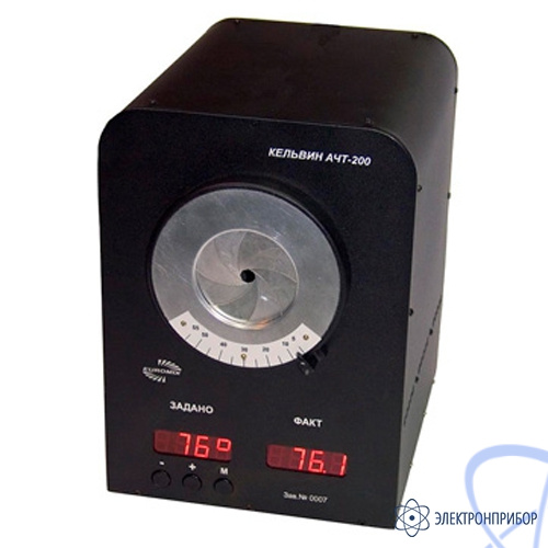 Работать с Кельвин АЧТ-200 значительно удобнее за счёт встроенной ирисовой диафрагмы, позволяющей быстро и точно менять диаметр апертуры от 5 мм до 55 мм. Микроконтроллер прибора обеспечивает максимально быстрый выход на нужную температуру АЧТ. Схема форсированного охлаждения с двумя вентиляторами сокращает типичные для многих моделей АЧТ потери времени из-за медленного охлаждения.