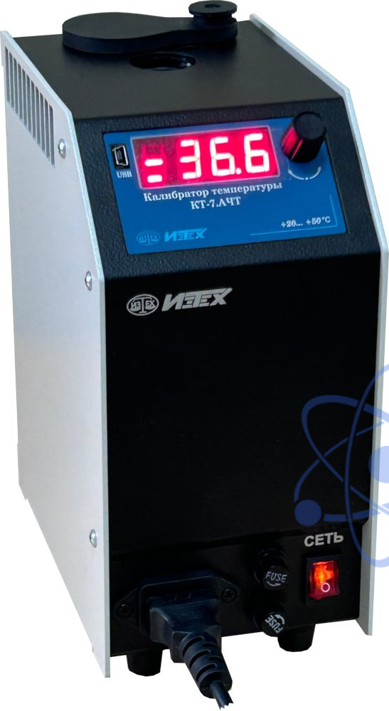 Калибраторы температуры КТ-7.АЧТ предназначены для воспроизведения радиационной температуры в диапазоне от плюс 20°С до плюс 50°С в лабораторных условиях и применяются в качестве рабочего эталона 2-го разряда согласно государственной поверочной схемы для средств измерений температуры (часть 3), утвержденной приказом Росстандарта от 23.12.2022 № 3253. Основным назначением КТ-7.АЧТ является поверка медицинских инфракрасных термометров.