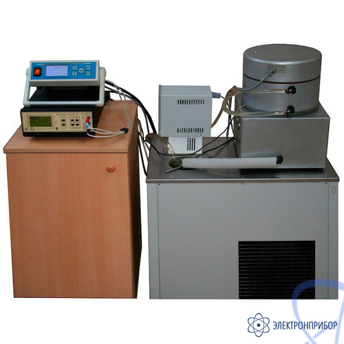 Создание и автоматическое поддержание стационарного и равномерного теплового потока заданной плотности в теплометрическом блоке обеспечивается за счет поддержания постоянной разницы температур верхнего нагревателя, температура которого задается и стабилизируется блоком управления, и нижнего холодильника, температура которого определяется теплоносителем, циркулирующим от термостата (поставляется по спецзаказу). Площадь рабочей зоны теплометрической камеры позволяет поверять одновременно до 18 датчиков теплового потока.