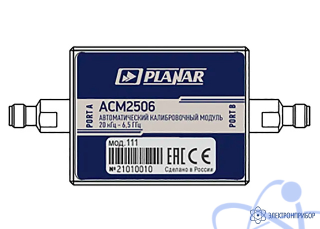 АСМ2506-111 — двухпортовый автоматический калибровочный модуль с рабочим диапазоном частот 20 кГц - 6,5 ГГц и волновым сопротивлением 50 Ом, предназначенный для выполнения калибровки векторных анализаторов цепей (ВАЦ) в автоматическом режиме.