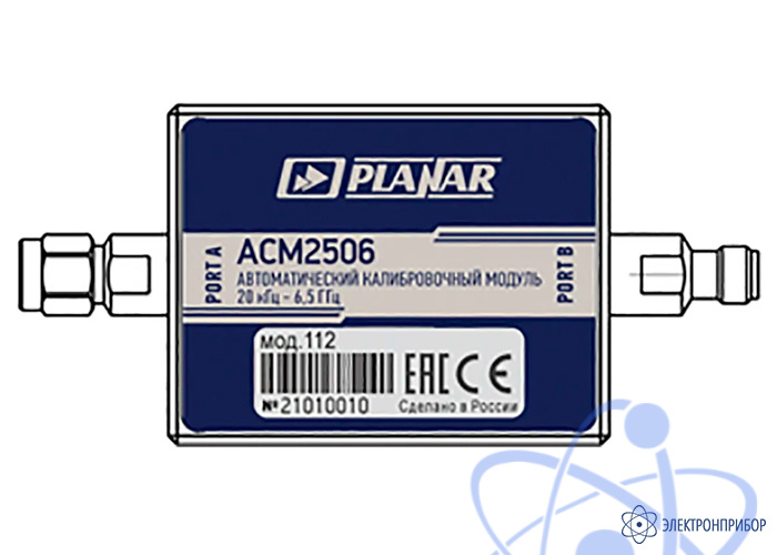 АСМ2506-112 — двухпортовый автоматический калибровочный модуль с рабочим диапазоном частот 20 кГц - 6,5 ГГц и волновым сопротивлением 50 Ом, предназначенный для выполнения калибровки векторных анализаторов цепей (ВАЦ) в автоматическом режиме.