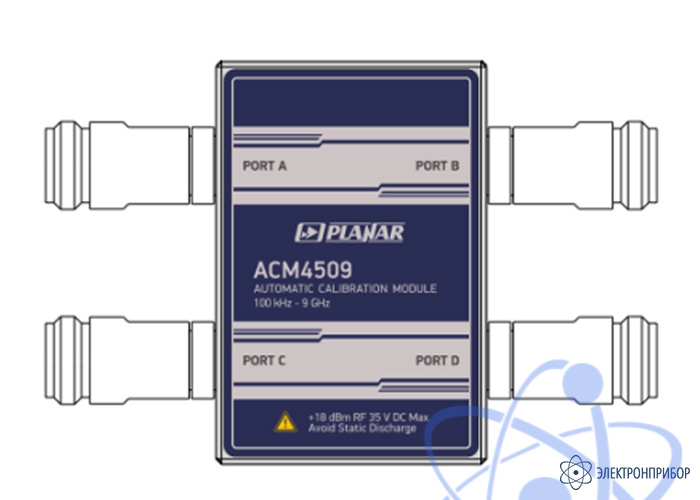 ACM4509-01111 - четырехпортовый автоматический калибровочный модуль с рабочим диапазоном частот 100 кГц - 9 ГГц и волновым сопротивлением 50 Ом, предназначенный для выполнения калибровки векторных анализаторов цепей (ВАЦ) в автоматическом режиме.