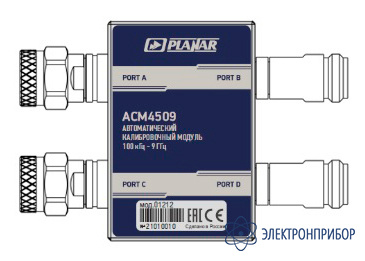 ACM4509-01212 - четырехпортовый автоматический калибровочный модуль с рабочим диапазоном частот 100 кГц - 9 ГГц и волновым сопротивлением 50 Ом, предназначенный для выполнения калибровки векторных анализаторов цепей (ВАЦ) в автоматическом режиме.