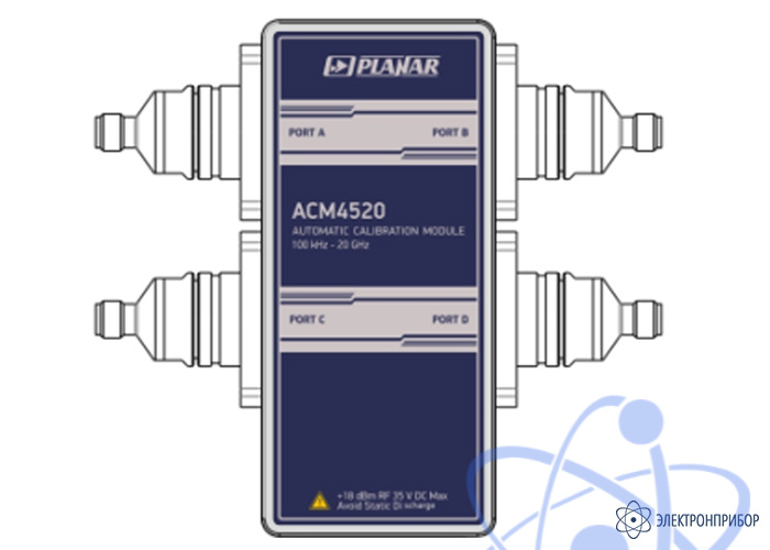 ACM4520-11111 - четырехпортовый автоматический калибровочный модуль с рабочим диапазоном частот 100 кГц - 20 ГГц и волновым сопротивлением 50 Ом, предназначенный для выполнения калибровки векторных анализаторов цепей (ВАЦ) в автоматическом режиме.