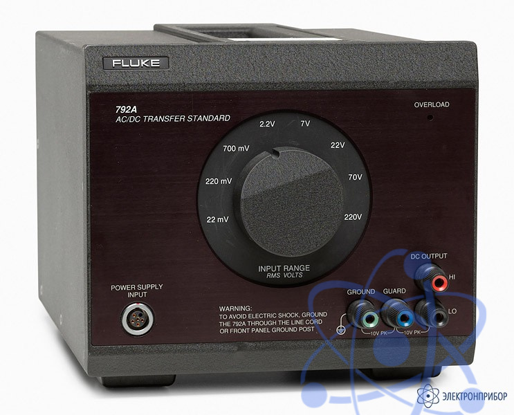 Устройство Fluke 792A состоит из четырех модулей. Блок обмена представляет собой основной аналоговый компонент устройства Fluke 792A для диапазона от 20 мВ до 220 В. Разъемы Type-N из нержавеющей стали обеспечивают низкое ослабление сигнала и высокую повторяемость результата измерения. Отдельные блоки питания позволяют независимо транспортировать для калибровки блок обмена и резистор для диапазона 1 000 В. Резистор для диапазона 1 000 В изолирует тепло, выделяемое при высоких напряжениях, вне главного блока обмена. Резистор диапазона имеет низкий температурный коэффициент, быстро стабилизируется и демонстрирует малые различия для переменного/постоянного тока. Переключатель питания без разрыва тока обеспечивает переключение между входами переменного и постоянного тока.