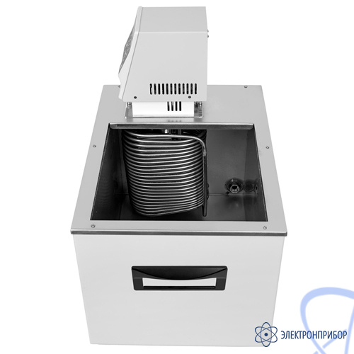 - Встроенный теплообменник для подключения к водопроводу или проточному охладителю позволяет устанавливать температуру регулирования ниже температуры окружающей среды.