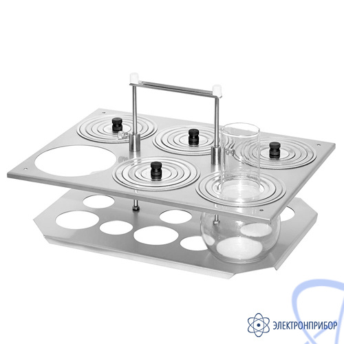 - Пять стальных концентрических колец для уплотнения лабораторной посуды.