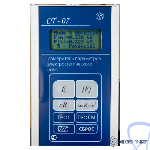 Измеритель параметров электростатического поля СТ-07 предназначен для измерений напряженности электростатического поля от зарядов на поверхности, напряженности электростатического поля в свободном пространстве, электростатического потенциала и поверхностной плотности зарядов. Предназначен для экспрессных измерений в жилых и рабочих помещениях биологически опасных уровней электростатических полей, источниками которых являются электроустановки, средства отображения информации (дисплеи компьютеров, телевизоры, игровые автоматы), а также отделочные строительные материалы.