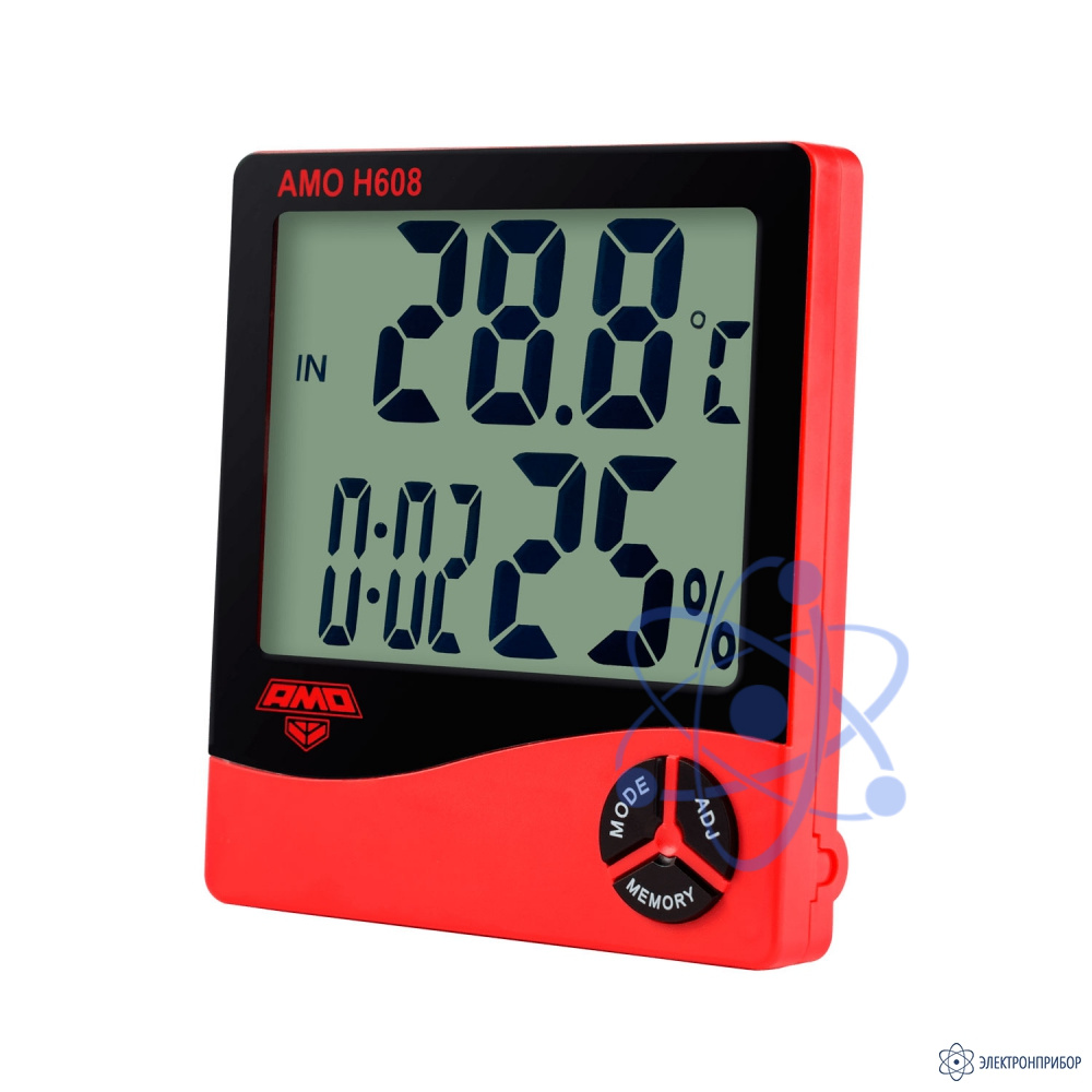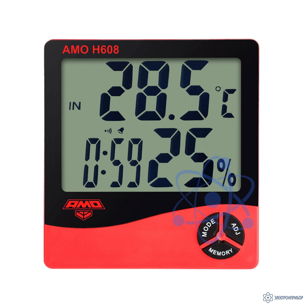Цифровой термогигрометр AMO H608 удачно сочетает измерение влажности и температуры воздуха с функционалом цифровых часов. Модель может определять эти параметры в широком диапазоне и с высокой точностью. Так, например, погрешность значения температуры не превышает одного градуса.