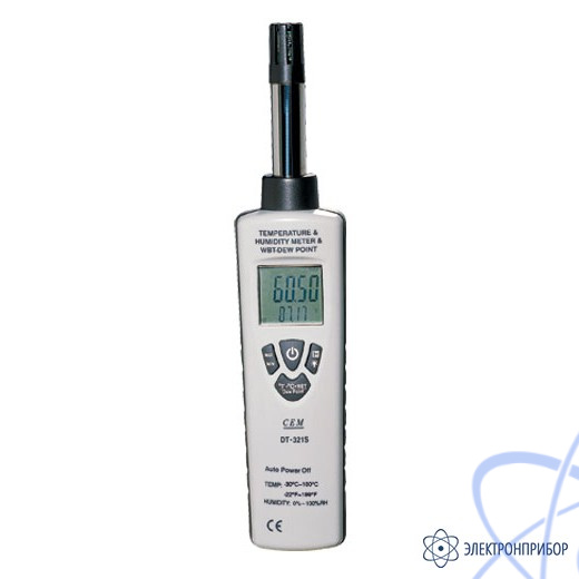 Психрометр DT-321S позволяет определить температуру, влажность, температуру точки росы и влажного термометра.