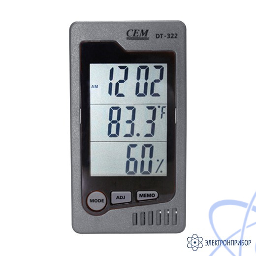 Комнатный термогигрометр DT-322 предназначен для измерения температуры и влажности воздуха в помещении. Прибор DT-322 имеет тройной ЖК-дисплей, позволяющий одновременно отображать время, температуру и влажность.