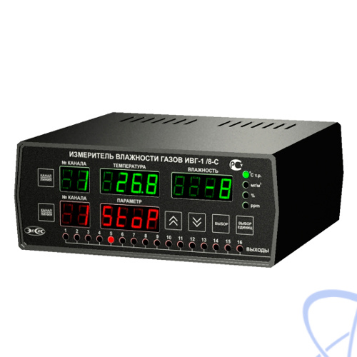 - ИВГ-1/8-С-8Р-8А - стационарный четырехканальный измеритель-регулятор микровлажности газов (измерительный блок, 8 реле, 8 аналоговых выходов).