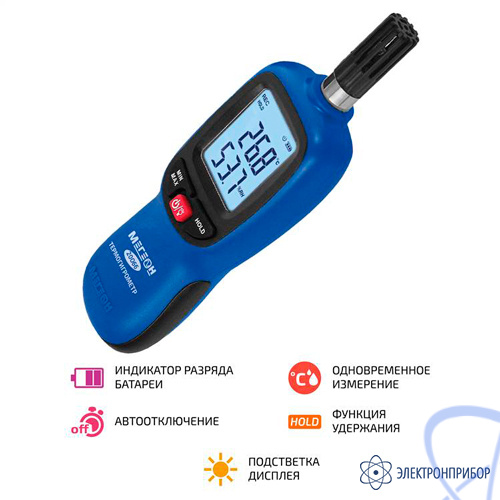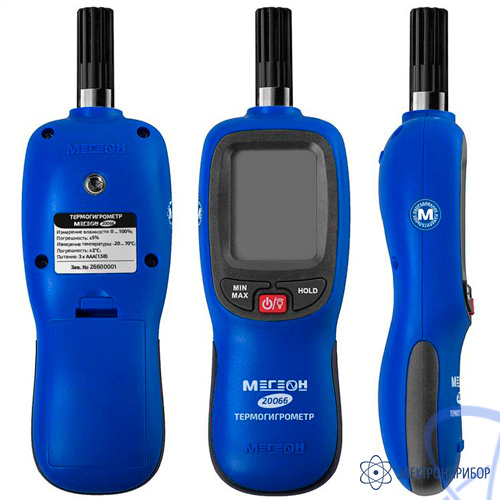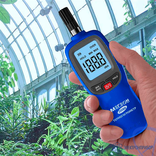 МЕГЕОН 20066 – новинка в модельном ряду цифровых высокочувствительных термогигрометров. Представленный прибор внесён в ГРСИ по номером 89786-23 и предназначен для быстрого определения параметров температуры и влажности с высокой точностью в помещениях и на открытом пространстве. Помимо этого с его помощью можно зафиксировать максимальные и минимальные значения измеренных данных. Преимуществом также является функция записи результатов в память ёмкостью 999 ячеек. Измеритель получил современный дизайн и компактные размеры. Модель имеет эргономичную форму корпуса, удобное расположение органов управления на передней панели и большой ЖК- дисплей с яркой светодиодной подсветкой. На заднее стенке предусмотрено монтажное отверстие для установки на штатив, благодаря чему достигается максимальное удобство при эксплуатации.