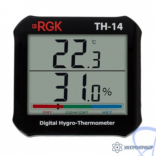 Цифровой термогигрометр RGK TH-14 служит для непрерывного измерения температуры в диапазоне от 0°С до + 50 °С с точностью ±0,5°С и влажности в пределах от 10% до 95% с точностью от 3%. Прибор является идеальным решением для контроля условий хранения продукции и материалов, а также для оценки климата в жилых или коммерческих помещениях.
